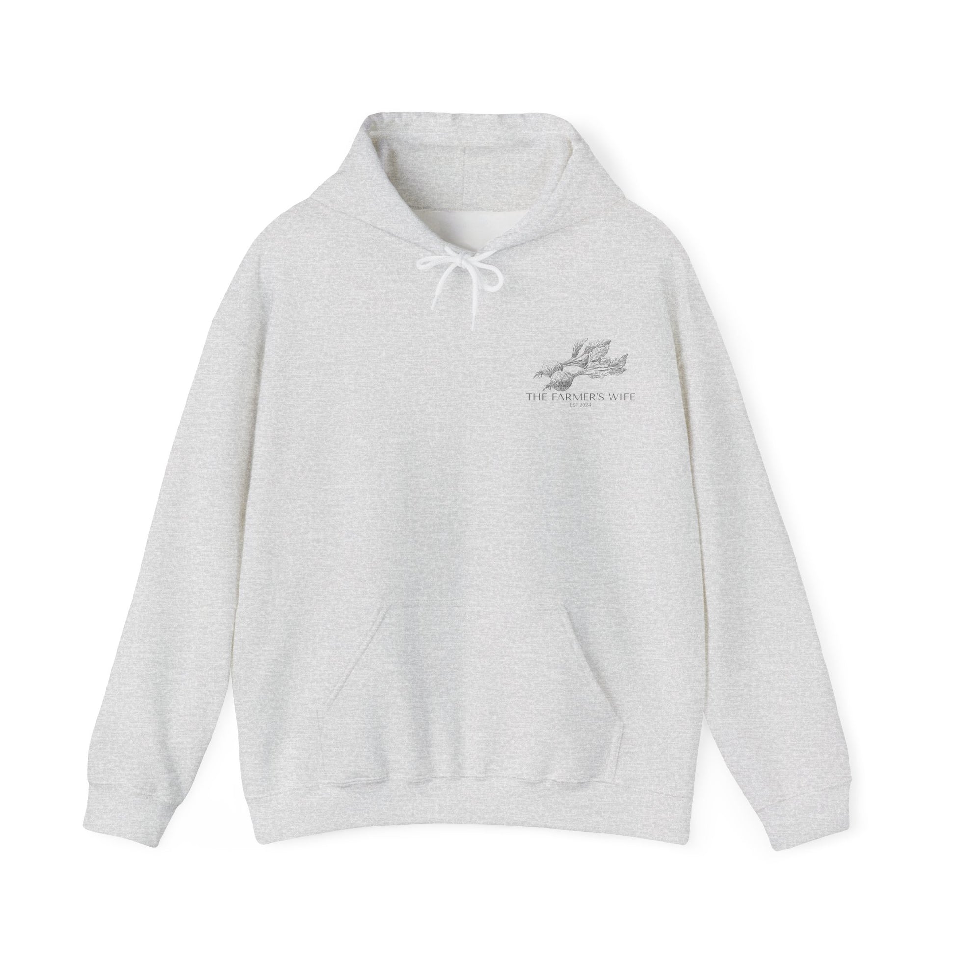 Stay cozy and warm in this fluffy and comfortable hoodie featuring a kangaroo pocket and a drawstring hood. Perfect for the farmer's wife and anyone looking to show off their community spirit. Ideal for chilly days and casual gatherings.
